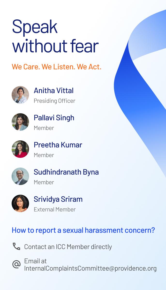 At Providence India (‘PGC’), we are committed towards creating a safe and healthy environment that promotes a sense of participation in all our caregivers. There is no doubt that all our caregivers are competent, motivated to achieve their goals and are professionals of the highest grade. Treating each other with respect and dignity are our key values at PGC and we expect everyone to promote a sense of personal responsibility towards each other.